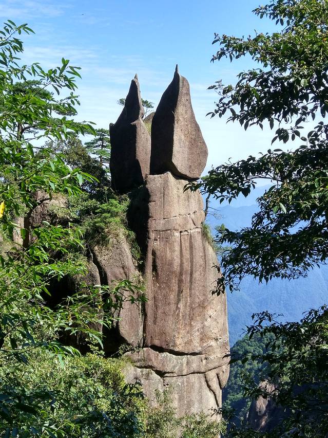 还是5点半就醒了。6点钟出去找吃的,顺便问问去龟峰(地图上是圭峰,因为很多石头像龟,大家都称其为龟峰。)的公交车几点有。路上没什么人,问了一个人说不知道,6点多应该没有。老城区太破了,好容易才找到一个早点铺。吃完早饭,8点钟退房,到城北桥头公交车站等去龟峰的车。原来2路6点半就有车了。大约9点到景区,人很少,天还是阴沉的。按照游览图从好汉坡上山。神奇的石头,奇形怪状,赭红色。同一块石头从不同的方向看过去,呈现出不同的形状。海拔不到500米,轻轻松松登上骆驼峰。到山顶太阳出来了,死晒!下山来到湖边,这里的登山杖20元一根。买一根,顺便问问将军楼怎么走。问得好,不然差点错过一个最好的景区。下了游船,直奔竹林,来到前山。果然惊艳!应该能从前山走到好汉坡下山,找到路没有人走,不敢冒险,就沿原路返回下山了。原本计划4个小时游玩,结果玩了7.5个小时。累得走不动啦。回到旅馆取出行李,路边吃了包子。坐公交到火车站。晚上8点半到玉山,被一群司机包围。上了一辆车,司机开始忽悠我明天做他的车上山,还说能帮忙找到便宜的山上旅馆。