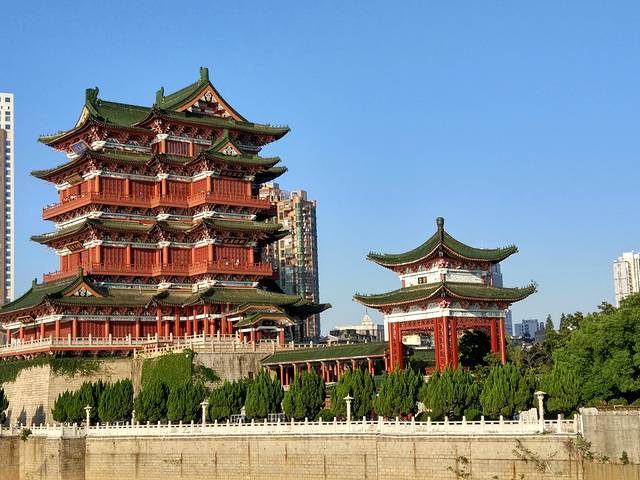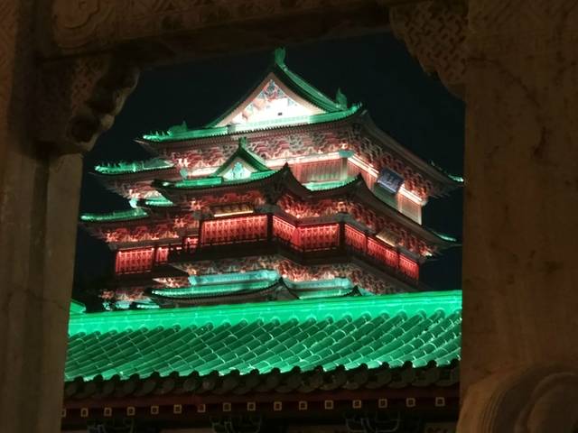 难得还是晴天,早晨虽然阴云笼罩,9点左右 庐山 又迎来蓝天白云。再上含鄱口,没有看到 鄱阳湖 。玩够了,走吧。回到正街,在附近的观景台欣赏阴云散去后的群山,错落的别墅红红绿绿布满对面的山坡,朵朵白云飘过青黛的山巅。经历了一天多的大雾,重新见到蓝天,美极了!在正街上的售票处买好去 九江 的票,到涵洞那边的停车场坐车去 南昌 。(路边有滚动发车的中巴在揽客,千万不要坐,除非人足够多,把车坐满。)到 南昌 已经是下午,乘52路公交,榕门路南口下车,入住七天万寿宫店。酒店位置非常好,去 南昌 八一起义纪念馆,贺龙二十军指挥部和滕王阁都可以步行,就是装修陈旧,有些破烂了。傍晚步行到赣江边,晚上7点滕王阁的景观灯打开,雄伟的滕王阁美轮美奂;赣江对岸的 南昌 新城 区灯火辉煌。美中不足的是附近有两座高层建筑破坏了滕王阁的景观环境,旁边的新东方大酒店占据一方观赏滕王阁的位置。用小米手机拍夜景,效果非常不好,在 贵州 时怎么没有问题呢?回旅馆时走错路了,在 庐山 休息得不好,太累了。这时我犯第四个错误,忘记在网上订明天的滕王阁门票。