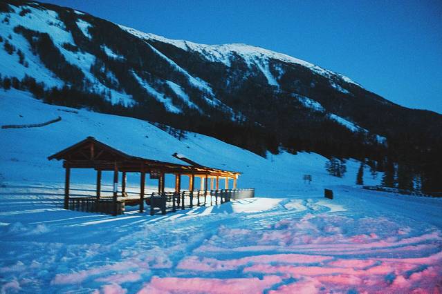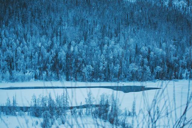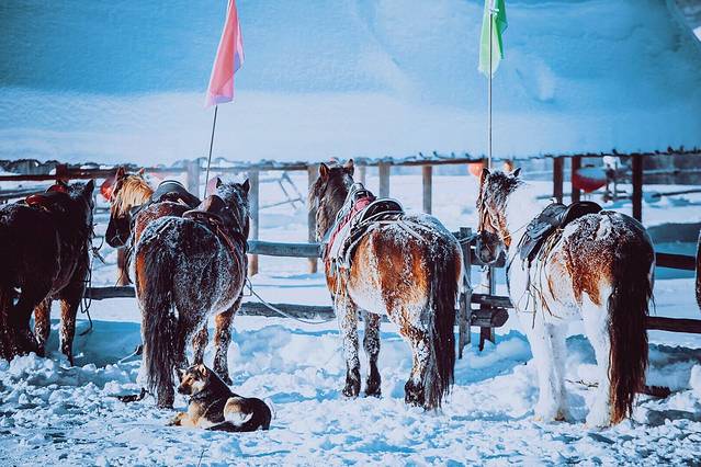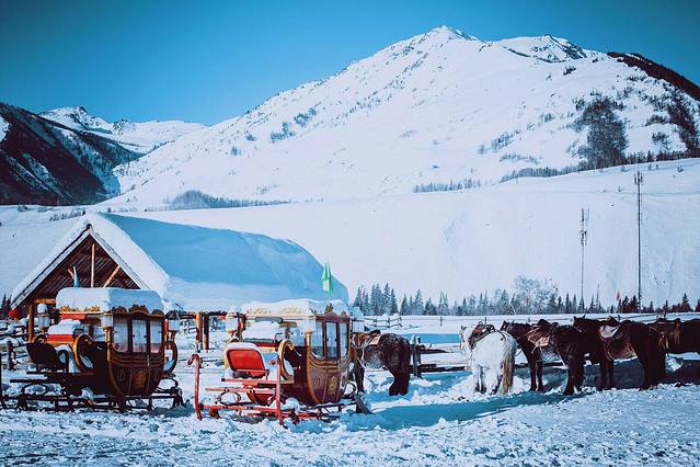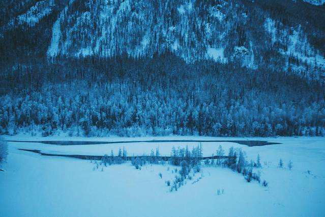 很多人知道喀纳斯,是因为它五彩斑斓的秋天。很少有人在冬天去喀纳斯,是因为每年10月以后大雪封山,里面的人出不来,外面的人又进不去。居住在山里的人,从11月一直要等到来年5月天气变暖冰雪消融才能出山,封山期长达7个月。如果你真的想进去,要从布尔津县至禾木中间一个叫冲呼尔乡的地方坐3天的马拉雪橇,中途要过两个晚上,第三天才能到达禾木乡。
