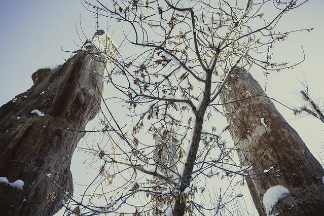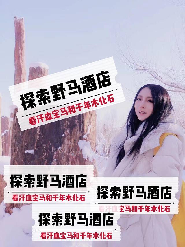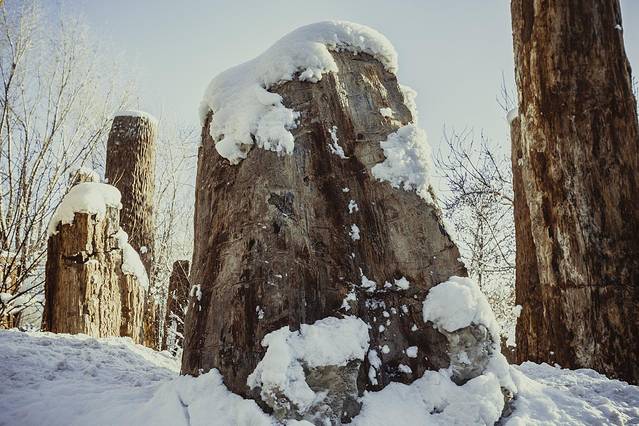 第一天去的其实就是野马古生态园,因为就住在野马酒店。窗外下着雪,外面就是古生态园绝美。新疆古生态园的一处奇景是规模庞大的硅化木群。