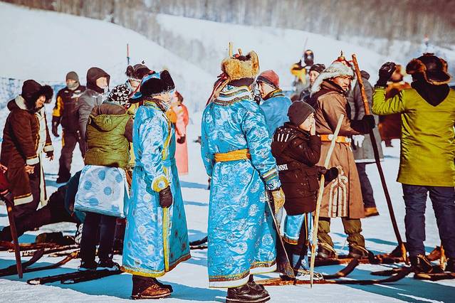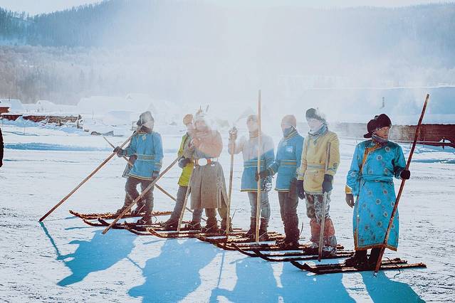 5.. 图瓦春节雪地之趣:古法滑雪比赛,禾木冰雪运动乐园