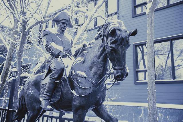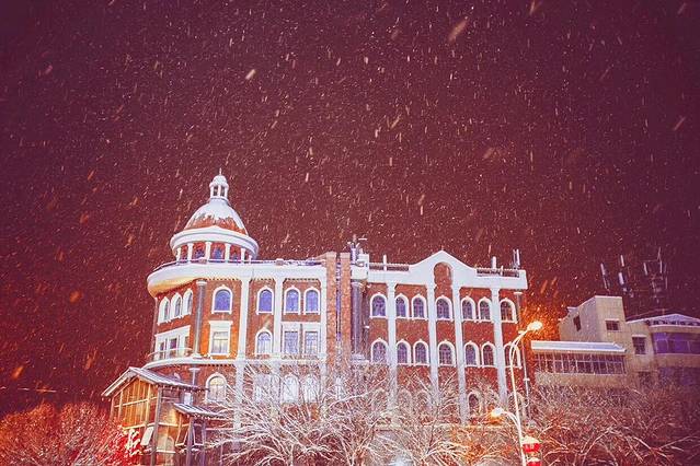 夜间雪地的反光较强,景物的轮廓清晰,取景曝光较为方便。由于夜间光线色温很高,积雪覆盖的景物呈现为蓝色调。拍摄雪地夜景应重点选择有灯光的村落街市,以暖色调的灯光为点缀,与雪地色调冷暖交融,使画面的色彩和光影效果更为丰富。