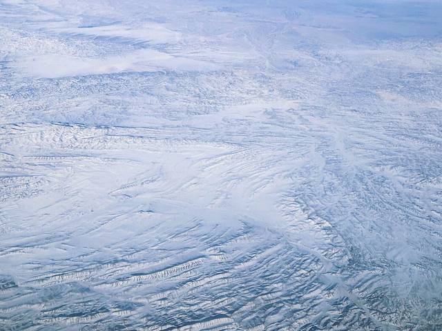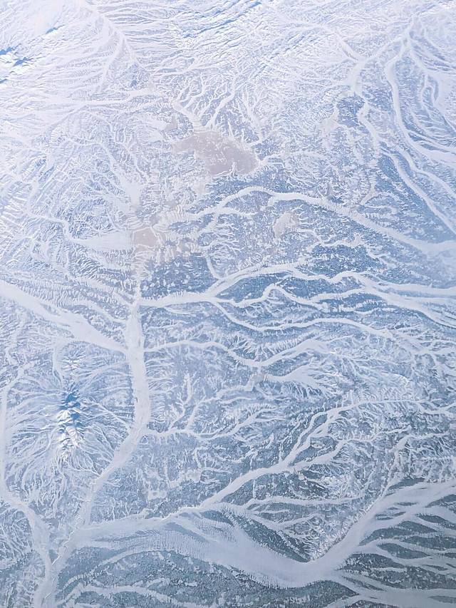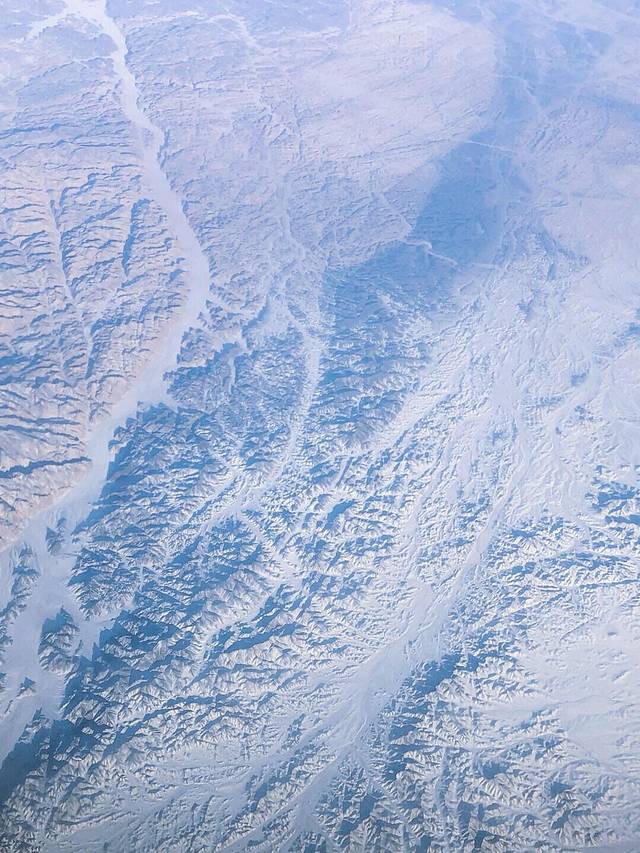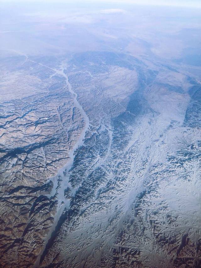 在飞往乌鲁木齐的路上要经过祁连山脉和天上山脉,这些山脉都是终年有雪覆盖的,不能亲身攀登这些雪山,在飞机上能一饱眼福也是不错的。况且飞机上看到的雪山与在地面上看到的雪山又是一种不一样的感觉,飞机上看到的范围广,更多。巍峨的雪山,在飞机上看到是如此的壮观,有机会乘坐飞往新疆的的朋友们,一定不要错过靠窗的位置。