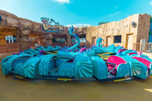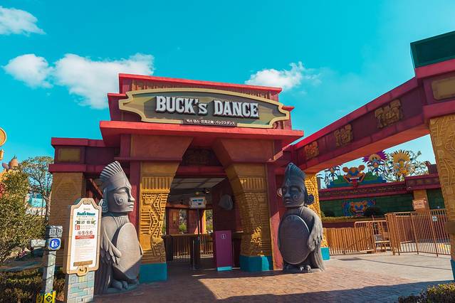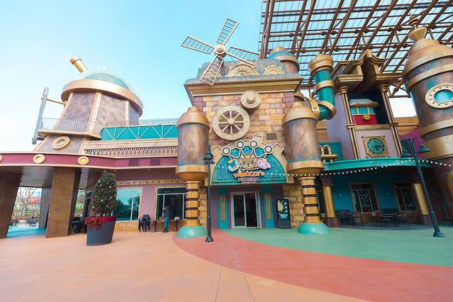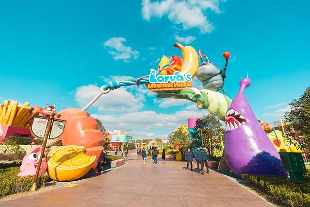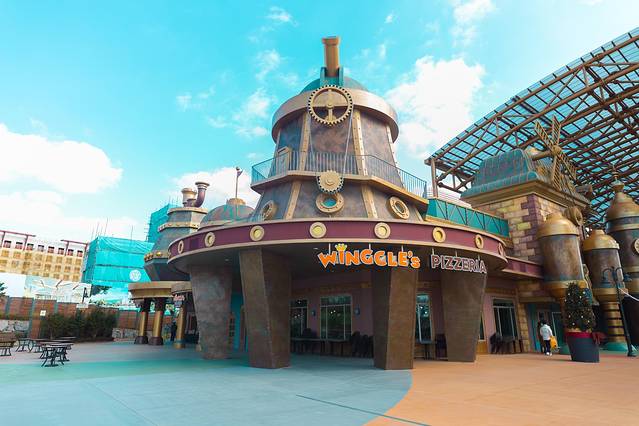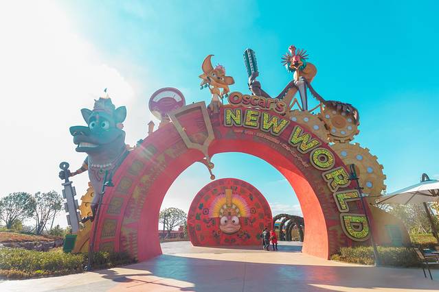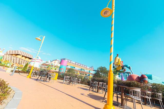 神话世界是与知名动漫公司TUBAn倾力合作的,乐园内的15个游玩设施就是TUBAn的动漫ip人物。我所看见的消费群体大多数是韩国18-25岁左右的青年男女。白天的神话世界颜色亮丽,多彩的建筑和卡通人物,结合蔚蓝的天空非常好看。