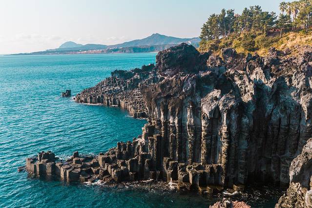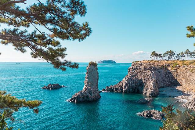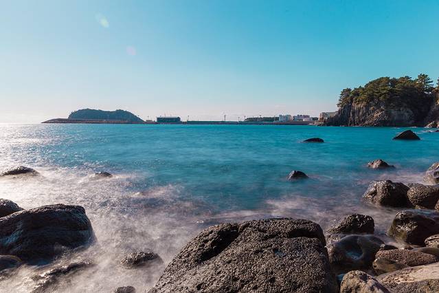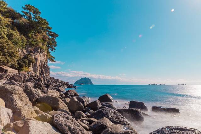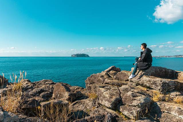 踏足济州岛的第一个景点,是一个叫做独立岩的海岸边。之所以叫做独立岩,只是因为这里有一个柱形的岩石,矗立在海岸边上。当地的人告诉我,从一个小路走到海边,那里不会有许多游客,可以安静的欣赏海岛风光。