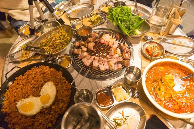 酒店有露天泳池、健身房、桑拿房,周围还有许多便利店和餐饮店。酒店里让我最喜欢的就是酒店的餐厅了,这里汇集了韩国许多特色美食,每天晚上的酒店自助餐都及其丰盛,人均消费大概600元人民币。但对于这样级别的酒店和韩国物价来说,已经非常物美价廉了。