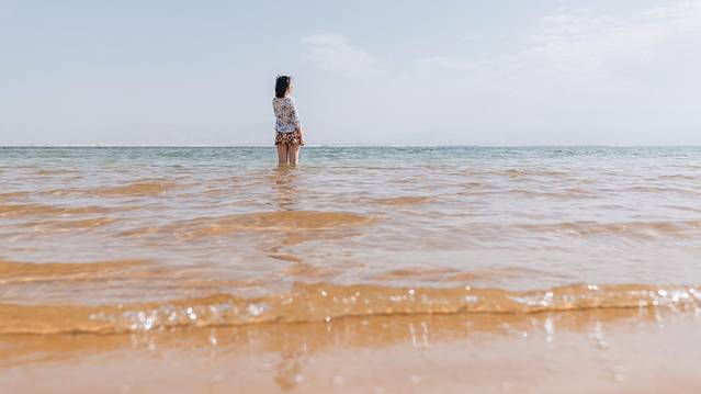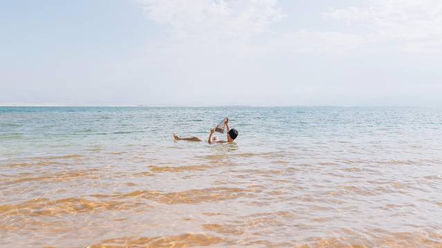可怜的帆帆就只能在死海边的石头上坐坐,也算是来过死海了。