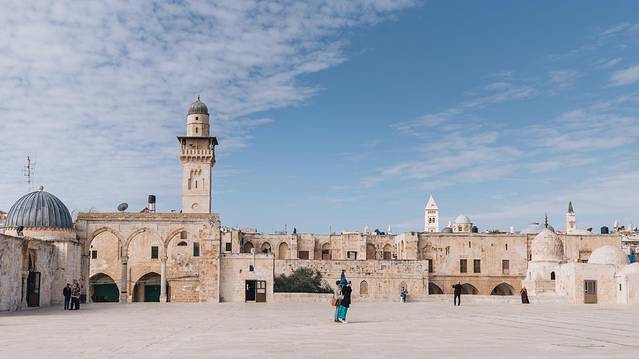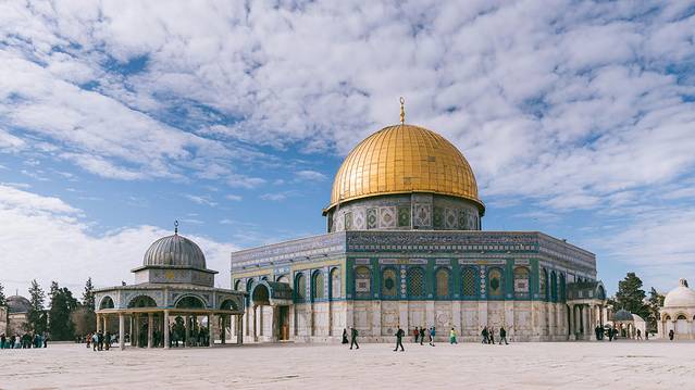 当罗马人摧毁第二圣殿后并没有把圣殿山重新修建,直到这里被伊斯坦世界统治,圣殿山才重建了这座圆顶清真寺。相传穆罕默德是在圆顶清真寺对面的艾格萨清真寺中升天的,圣殿山只有早上才开放。