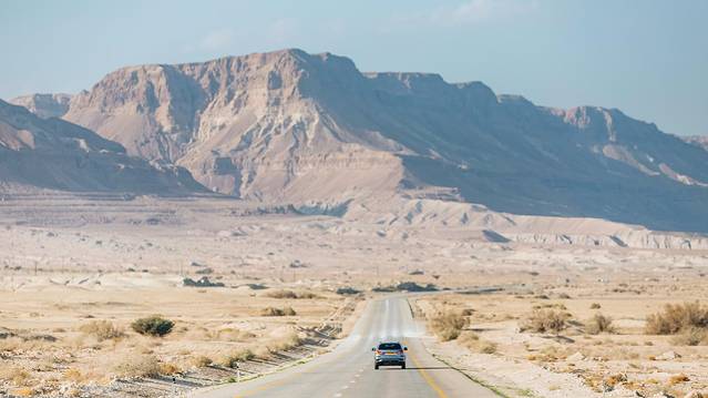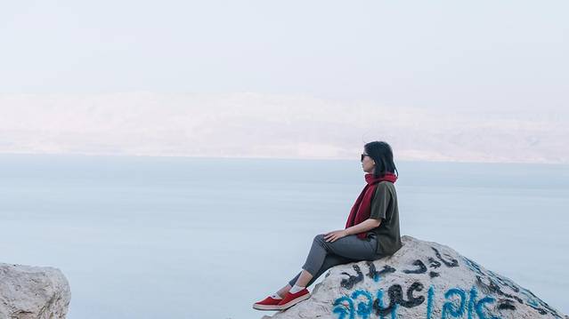 从耶路撒冷开到死海边的酒店近两个小时,离开耶路撒冷的时候竟奇迹般地飘起了雨,气温瞬间降低10度的体感,应许之地的气候也真是醉了。好不容易到了酒店,还没力气见一眼死海就躺下睡了。临睡前告诉帆帆:8点之前叫醒我我要生气了!