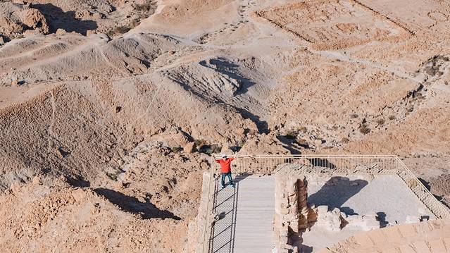 在我一个个都晒到不能动弹的时候,只有雷蒙童鞋还有精力爬上爬上让我帮拍照,真是佩服佩服,不过马萨达外围的样子倒是跟美国大峡谷有几分神似的。