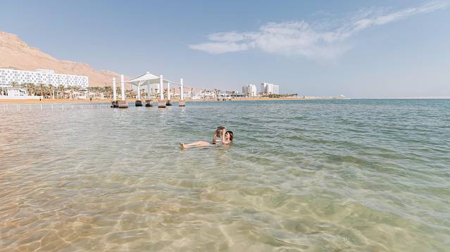 而后,我终于睡到了以色列唯一的一次自然醒,然后不可免俗地去死海里漂浮着来一张看报照。阳光下的死海,虽说只有20度,但丝毫不觉得冷。帆帆就惨了,在特殊的那几天,只能看着我和张雷蒙装逼……