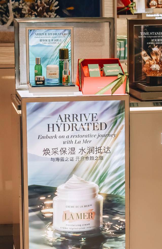 从上海浦东出发,在日上见到了“焕采保湿 水润抵达”的LA MER瞬间被吸引了眼球,水润两字正是我最大的需求。最爱的保湿精华露和大名鼎鼎的面霜自然不用多说,精油真的一点都不觉得腻,特别好吸收。在飞行了十个小时到达以色列的时候一点都没有干燥点,堪比面膜的功效了。
