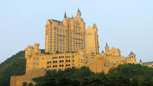 跟星海广场隔着马栏河,有座山坡上有座酒店,名字叫做一方城堡酒店,欧式城堡风格的酒店建在山坡上,可以俯瞰马栏河和星海广场,眺望星海湾和跨海大桥。普通房间价格在1500-2000左右,酒店五楼有露天花园,可以去吹吹风眺望下大海。