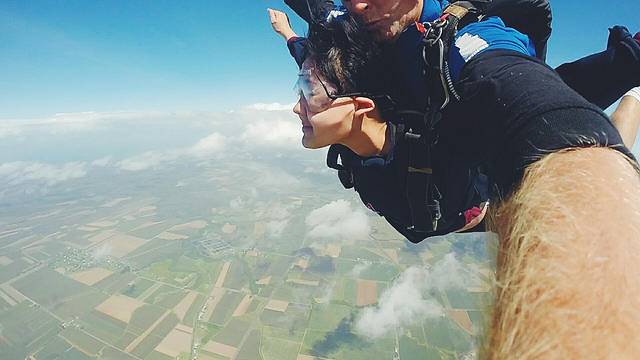 于是在那一天,你会看到一名中国姑娘,带着坚定而又视死如归的严肃表情跳出了机舱。由于风实在太大,跳下去的那一瞬间我并不敢睁开眼睛。于是幻想顿时破灭,我不过是个普通人罢了。