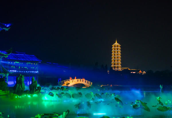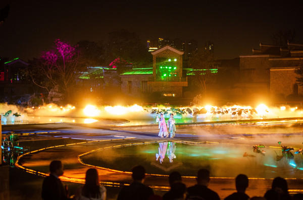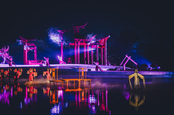寻梦牡丹亭,曾经只是一部戏剧的代表,如今它的含义更加的丰富,现在是一个文化园,也是一场沉浸式交互全景演出,这是这座以戏曲闻名的城市将《寻梦牡丹亭》这部闻名中外的戏剧传承弘扬的最好方式。夜色下,游客跟着剧幕的切换,不断的变换着场地。景区内还原了《牡丹亭》中的亭、台、楼、阁等梦幻景致,结合全息数字影像技术、巨型圆环装置投影等声光电技术。