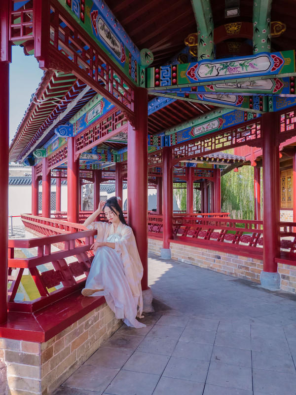 清晨的寻梦牡丹亭文化园,虽然没有晚上热闹的演出,但此时的文化园内同样值得游览,此时的文化园更像是一个景区,这里到处都是那个时代的古建筑,最好的体验便是着一身汉服,在这里来一场穿越之旅。