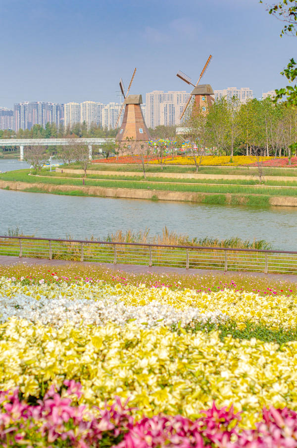 一大片花海,迎着风摇曳在河岸两旁,黄的、粉的、白的,不同的花占据着阶梯的上下左右。三翁花园不仅是草的世界花的海洋,也是都市人寻找浪漫和放松的地方。不如挑个周末,在这充满欧式风情的花园里晒着暖洋洋的太阳,闻着醉人的花香,赏着姹紫嫣红的花丛,度过美好的一天吧