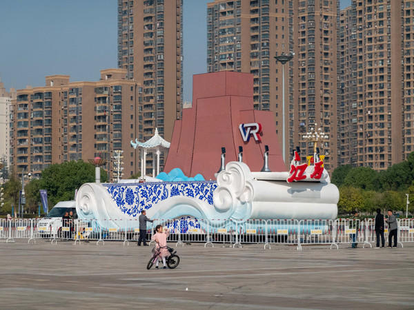现如今广场上还能看到国庆游行江西省彩车的模型。