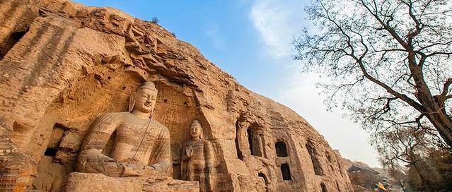 云冈石窟是大同旅游最出名的一张名片,云冈石窟位于武周山南麓,石窟依山开凿,东西绵延1公里。存有主要洞窟45个,大小窟龛252个,石雕造像51000余躯,为中国规模最大的古代石窟群之一,与敦煌莫高窟、洛阳龙门石窟和天水麦积山石窟并称为中国四大石窟艺术宝库。