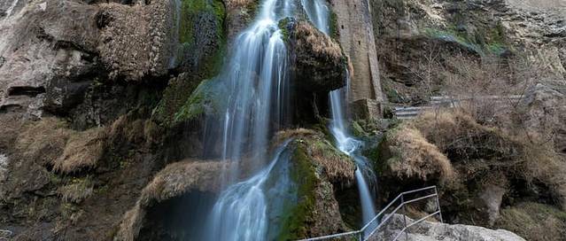 它是泽发水的源头,人称水帘洞,山坡谷中泉眼累累,形成悬泉。“娘子关瀑布”悬流百尺,顺悬崖峭壁而下,形成了一幅绚丽的“水帘瀑布”,如喷珠散玉直泻谷底。