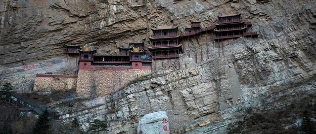 悬空寺位于山西省大同市浑源县恒山金龙峡西侧翠屏峰的峭壁间,素有“悬空寺,半天高,三根马尾空中吊”的俚语,以如临深渊的险峻而著称。建成于公元491年,是中国仅存的佛、道、儒三教合一的独特寺庙。