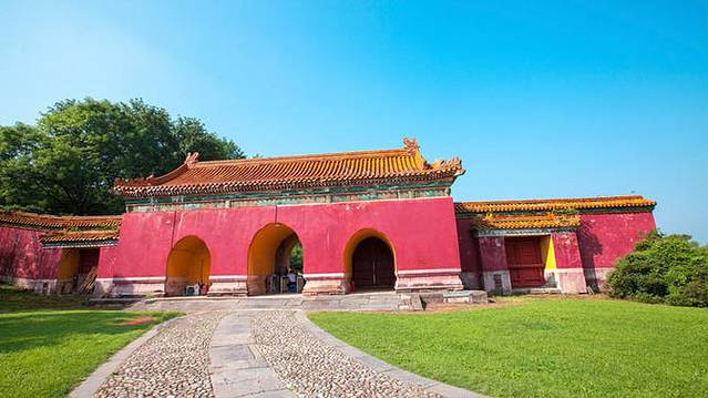 内明塘之北为内罗城,取“前方后圆”的平面图形,其内主要建筑有祾恩门、东西燎炉、东西庑、祾恩殿、陵寝门、二柱门、石五供、方城明楼、前后莹城等,是陵寝重要祭祀场所和帝后寝宫重地。