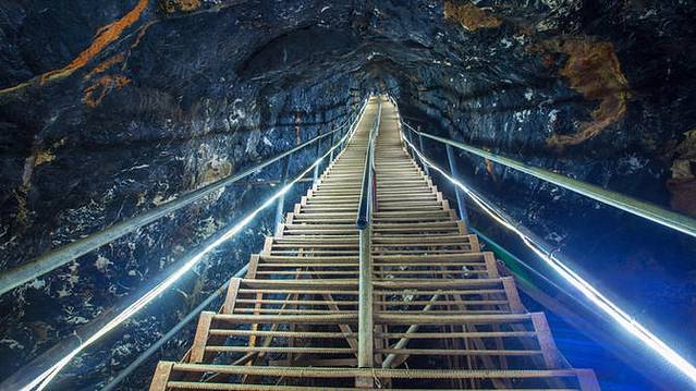 在溶洞的尽头则是200多级的天梯,直通至出口,几乎将近90度的坡度,让很多人既担心又忍不住要尝试一番。