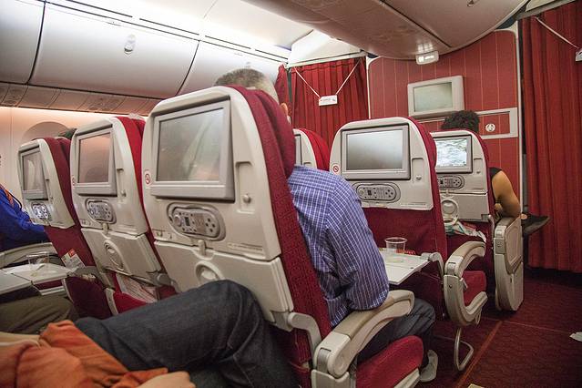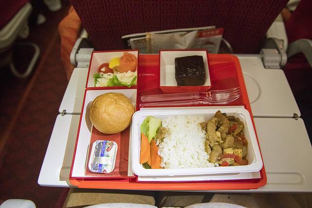 从北京到拉斯维加斯麦卡伦机场是3-3-3的座位,高清影院、触屏+遥控的双操作、中西结合的餐食是标配,整个航程12个小时左右,因为是夜航,还贴心地发了双面的眼罩,哈哈我决定收藏起来下次需要在飞机上睡觉时用。