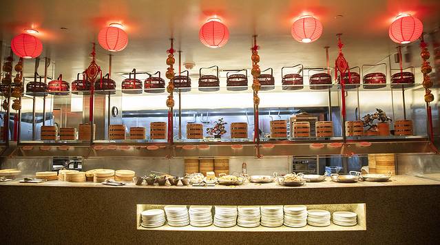 另外,在长长的选择台的尽头居然有不小的一块地儿是专门属于中餐的,挂着中国风的灯笼,麻婆豆腐、小笼包任君选择,也是令我们会心一笑了。