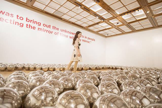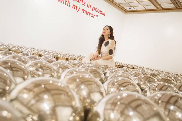 除了这个之外,百乐宫的艺术画廊还有一场草间弥生的展览,本来以为草间弥生会有很多点点,专门配了有点点的裙子……结果是玻璃球和神秘的灯光展,虽然没有点点,也是值得推荐的啦!门票15刀,喜欢草间弥生的同学不要错过哦!