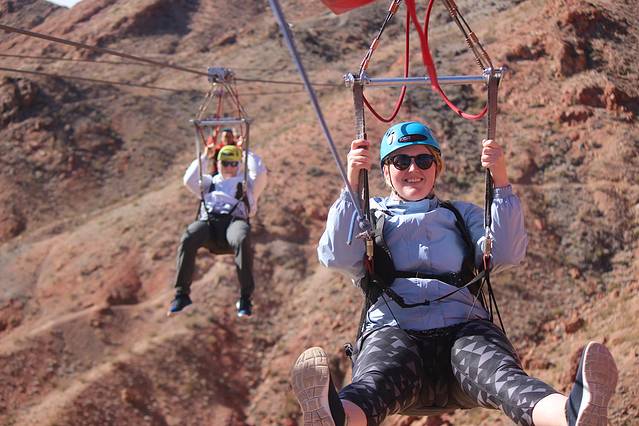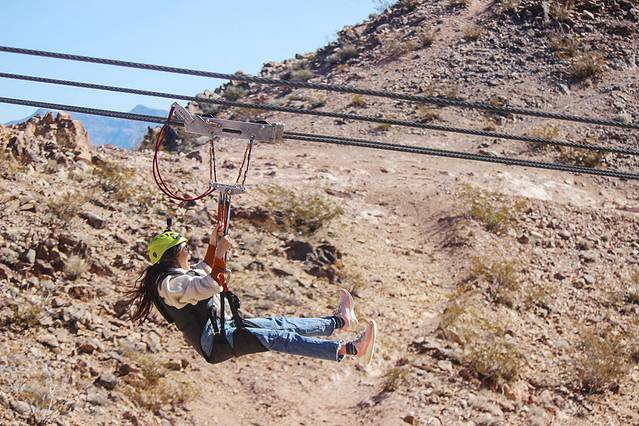 接下来,终于进入正式的滑索了!之前在泰国玩过丛林飞跃,但是这个峡谷滑索真的超级长速度超快,特别刺激!滑索一共分为四段,在索道上可以远眺拉斯维加斯,感受西部的壮丽风貌,是很另类的体验哦!
