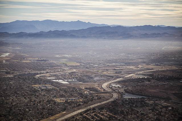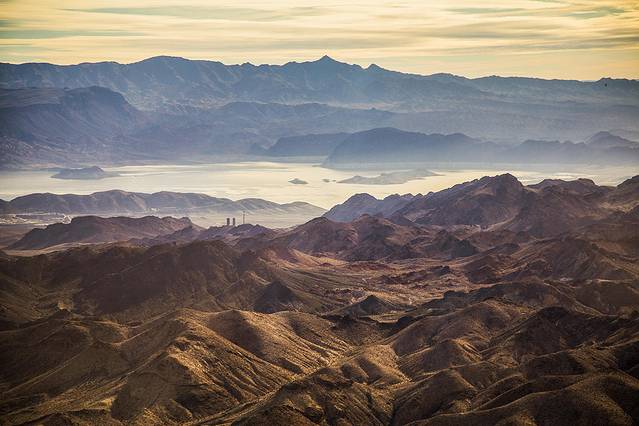 拉斯维加斯是个不能飞无人机的城市,因为天上全部都是直升飞机。拉斯维加斯有很多直升机公司可以选择,我们选择乘坐Maverick公司的直升飞机,跨越城市、湖泊、戈壁,最终到达大峡谷,一路上可以得到不一样的航拍作品。
