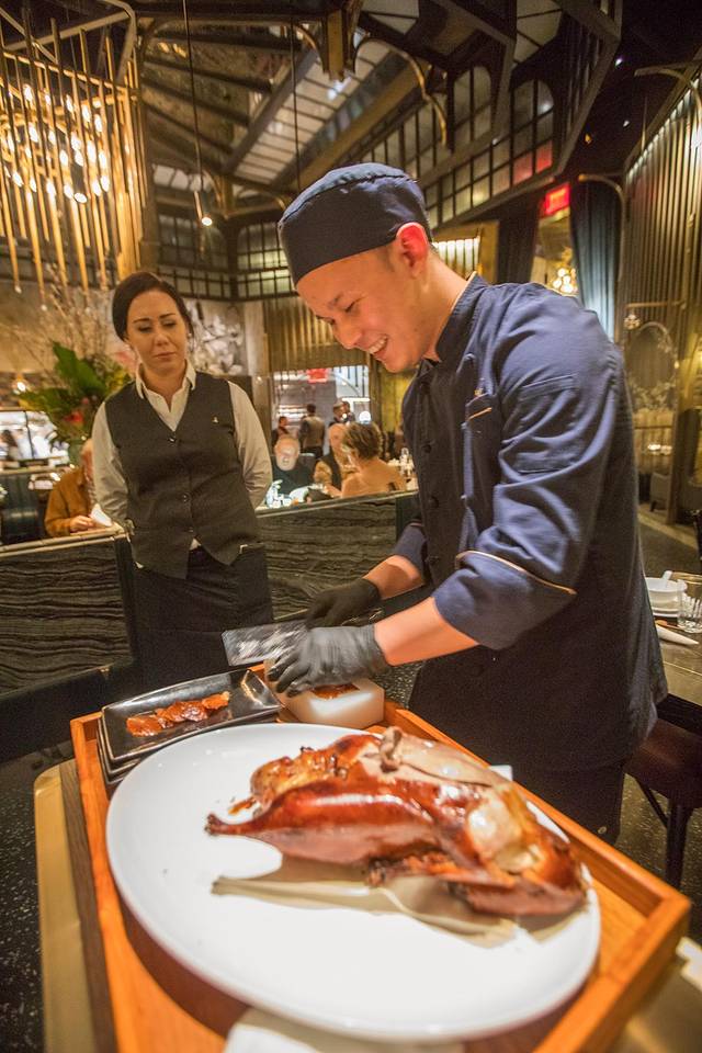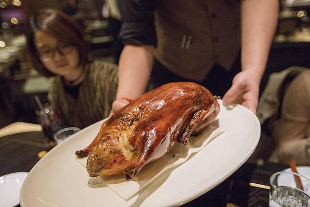 在美国的日子每天基本也就是吃汉堡三明治牛排,想要换个口味!最后选择了大名鼎鼎的Mott 32。这家中餐厅逼格极高,是一种奇特的都市工业风格,像是走在纽约唐人街或者香港混搭的霓虹灯夜色中。菜品也是粤式苏式京式都有,价格嘛……就是中国正常餐厅的价格数字后面门跟着美元[二哈][二哈]。我们点了最著名的烤鸭,价格108刀……当然味道还是相当好的,在基本保证了原味中改良了一点点,大大慰藉了我们的中国胃,扫了一眼厨房里全部是中国面孔,如果来拉斯维加斯非常推荐来体验一下哦!