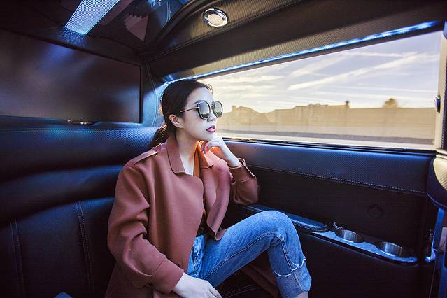 我们一早乘坐加长克莱斯顿轿车前往特莱格的峡谷中体验高空滑索,墨镜一戴,我就是这条街最有钱的妹!