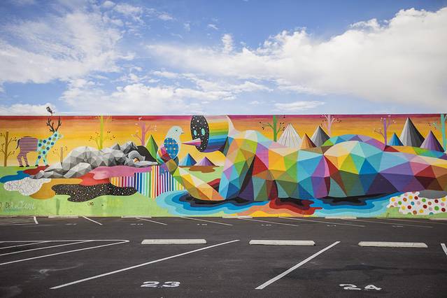 穿过弗里蒙特街后有一大片涂鸦墙和艺术区,是拉斯维加斯举办音乐节的地方,充满了美国西部的活力。