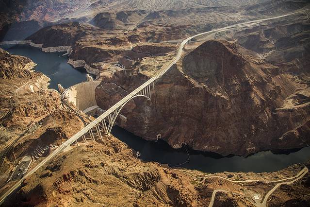 胡佛水坝是美国综合开发科罗拉多河(Colorado River) 水资源的一项关键性工程,位于内华达州和亚利桑那州交界之处的黑峡(Black Canyon),是美国最大的水坝,也被称为沙漠之钻。胡佛大坝是当时世界水利工程的奇迹,宛如一条巨龙盘卧在大地上,显得十分威武;这座水坝供应整个拉斯维加斯的用电量,还有内华达州的其他一些城市的供电,才有如今沙漠之城拉斯维加斯永不熄灭的霓虹灯,所以称胡佛大坝为拉斯维加斯之母。