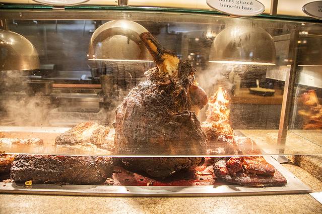 接下来这个……是我自己住的酒店里的自助餐厅!不要以为我是因为住在凯撒宫里就随便吃吃,这家自助餐厅在拉斯维加斯可是排名第一的!在饭点的时候排了老长老长的队。午市的价格在两百多人民币,选择非常非常多样,有非常好吃的牛排和超大的海鲜,虽然说跑到沙漠里来吃海鲜有点奇怪,但这家自助餐确实是出品非常优秀的餐厅啦。