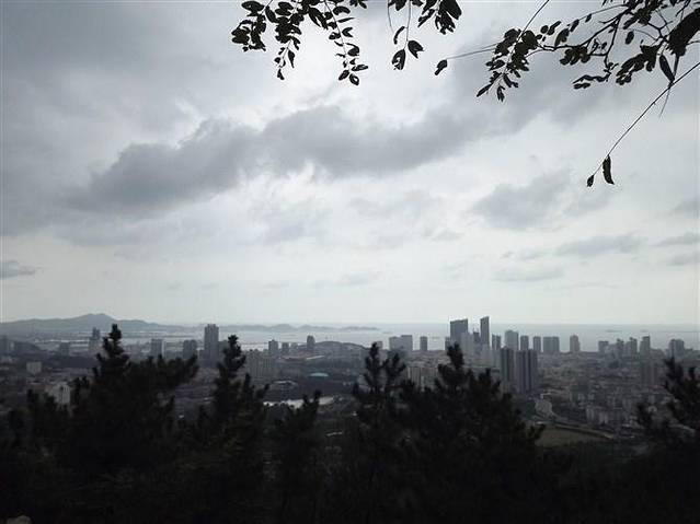 那天去南山,从学校走的时候,风和日丽的,阳光特别好,特别适合爬山呐~然后到烟大、转车。,快到南山的时候,突然发现,天是阴沉的。一片灰暗,公园里,人烟稀少。我顿时醒悟,完了,这边要下雨。为了不影响这次的心情,我还是带她进去了。我觉得,说不准,雨天的南山比晴天的南山更美呢~