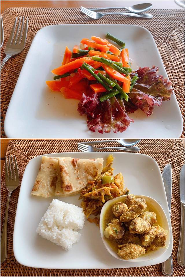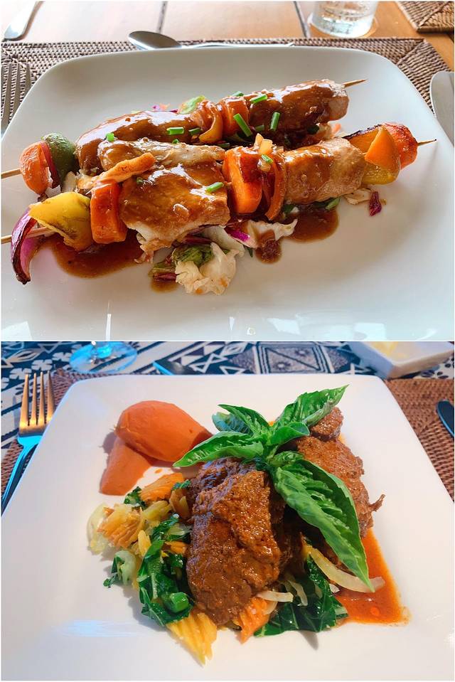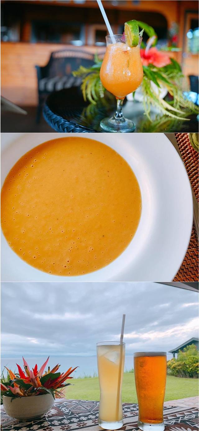 在Taveuni岛入住的酒店号称是斐济离岛中“最好吃的酒店”,结果果然名不虚传。每天早餐除了有新鲜水果+果汁、现烤面包或麦芬之外,还有各种做法的蛋、培根火腿等肉制品,以及吐司、蛋饼等。午餐为沙拉+主菜+甜点,晚餐则是汤+主菜+甜点。简单放一下每天的投食图片,具体酒店信息可以在下一章节查看~