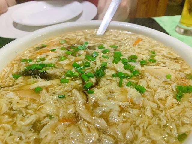 小份的酸辣汤竟然也有很大一盆,无法判断是否正宗,但味道尚可。海胆炒大白菜据说是店内隐藏菜品,在菜单上并没发现,问了服务生说可以做。海胆用料特别扎实,简单炒制之后淋在白菜上,海胆的鲜糯、白菜的甜脆融合在一起,是一种会鲜掉了眉毛的美味。