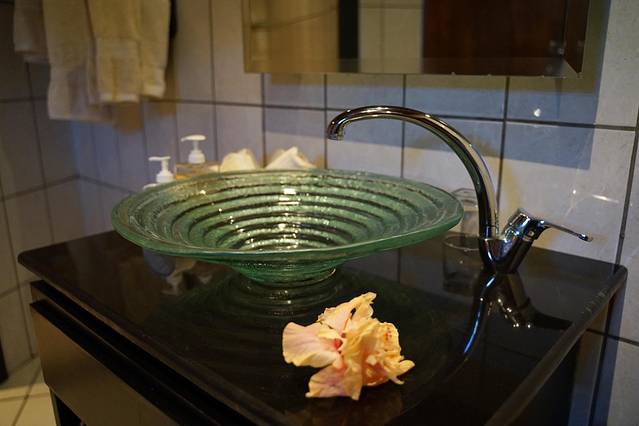 浴室有两个洗手池,洗漱用品都是斐济当地的天然植物产品。