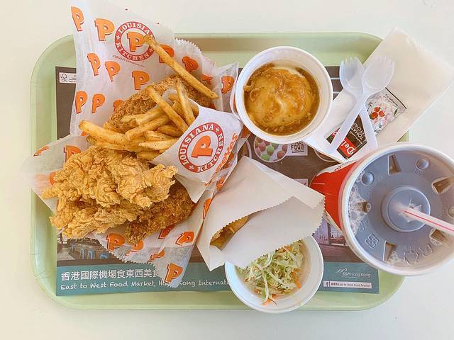 在香港机场白天转机的时间明显好过了很多。香港机场真的不要太好逛又好吃!!如愿以偿吃到了超美味的大力水手炸鸡,顺路去登机口旁买了超爱的蛋挞王的奶茶,带上飞机可以一直喝到斐济~