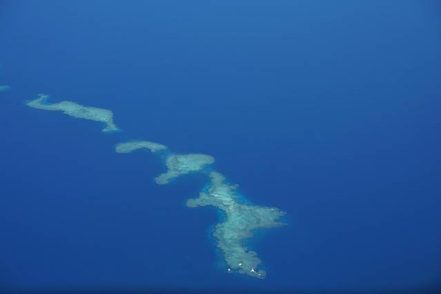 每个岛屿都有独特的地貌和形状,从高空中看,仿佛一条条断裂的丝带漂浮在茫茫大海之上。丝带弯弯绕绕、迂回曲折,构成了斐济群岛最独特的样貌。