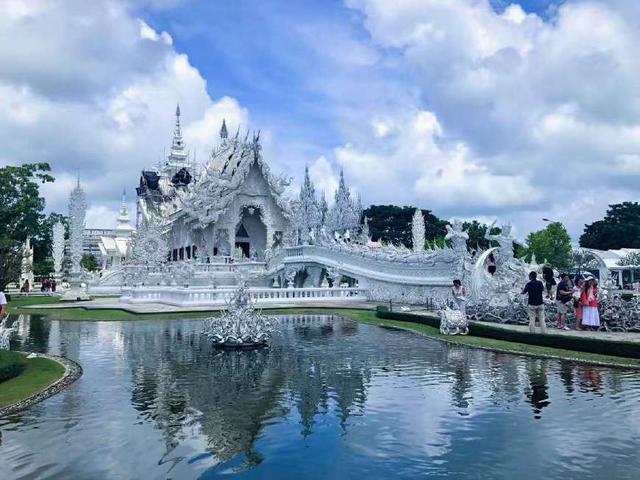 可以空出一天的时间给白庙黑庙蓝庙,白庙如同白色的精灵一般。(图来自朋友圈)距离清迈三个多小时的清莱,下次一定要去白庙看看,看看这美的不像话的庙宇。