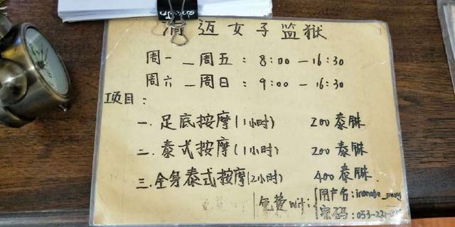 进去后先换衣服,然后有专人负责洗脚,然后再按摩。不让拍照,给我按摩的阿姨可热情了,一点都看不出来是服刑人员,所以我们不能对她们有偏见。200泰铢是很值得的。