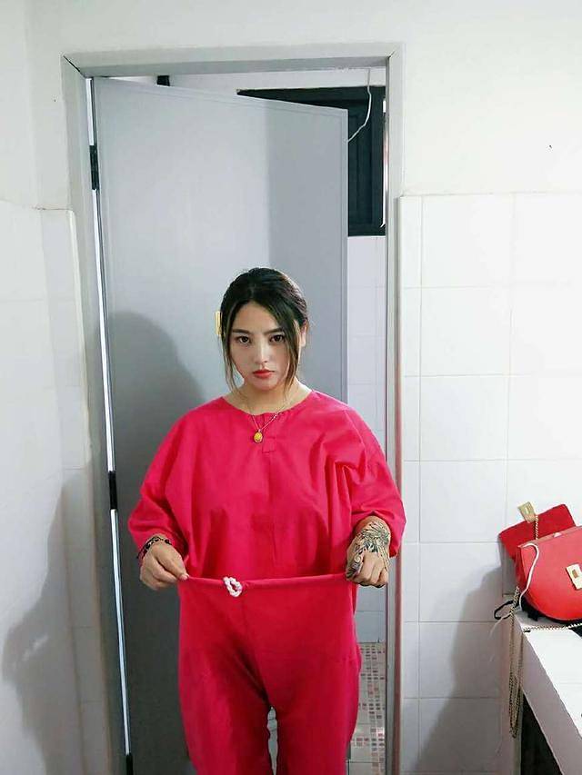 红色衣服是按摩服,裤子非常大,配上我这表情,也是醉了。