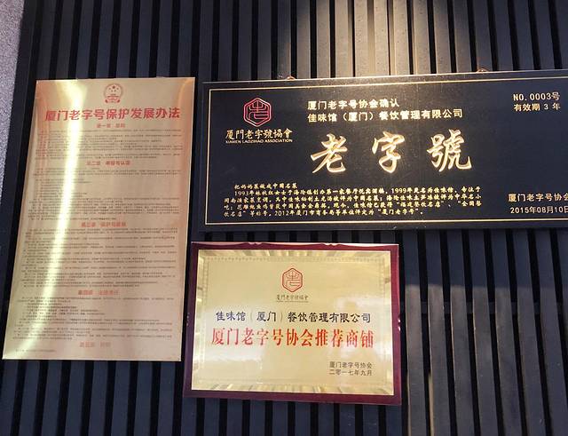 海沧佳味馆,专注于闽南渔家烹调,93年扎根在海沧镇,99年在岛内开分店,迄今已有25年。门口墙上挂的各式牌匾,静静的诉说着那份荣誉。