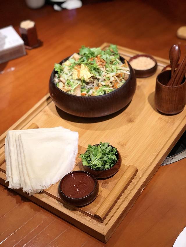 现炒春卷,这道菜也是闽南小吃的代表之一,新鲜炒制的馅料里面包含了海蛎,包菜,香菇丁,胡萝卜丝,瘦肉等,配上肉松、香菜和甜辣酱,自己动手把它们包在一起,仪式感十足。怕自己包不好也可以喊阿姨带劳哦,很贴心有没有?