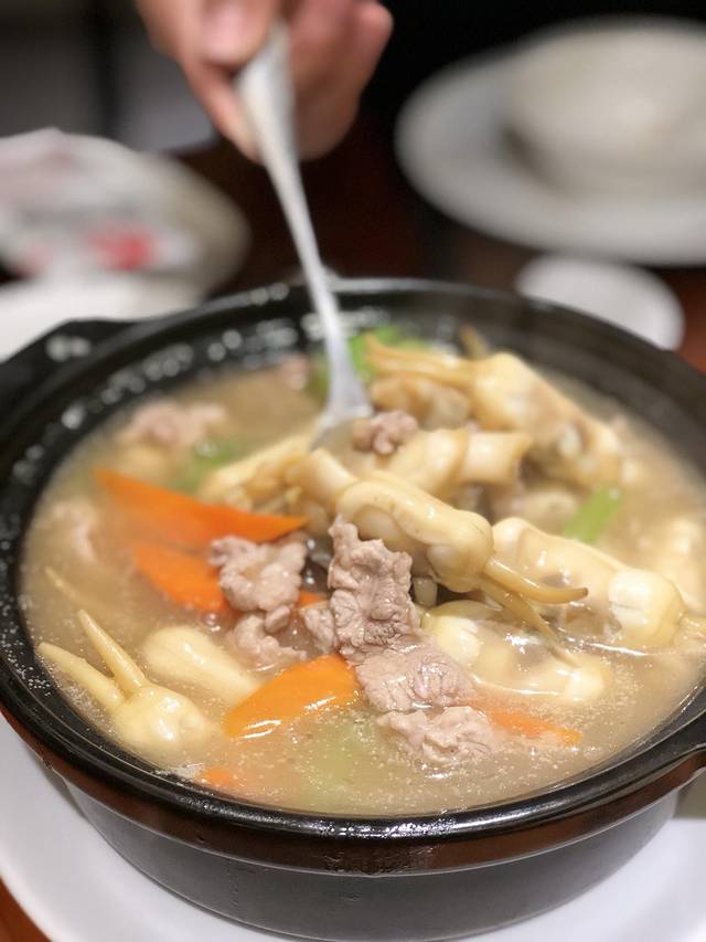佳味馆的这道汤用土龙配猪尾和药材熬4小时以上,因为费时需要提前预定,看得见的真材实料,汤头鲜美无比。近期连续加班感觉非常疲劳,一碗喝下去立马来了精气神。温馨提醒,土龙刺多,吃的时候要特别注意哦!
