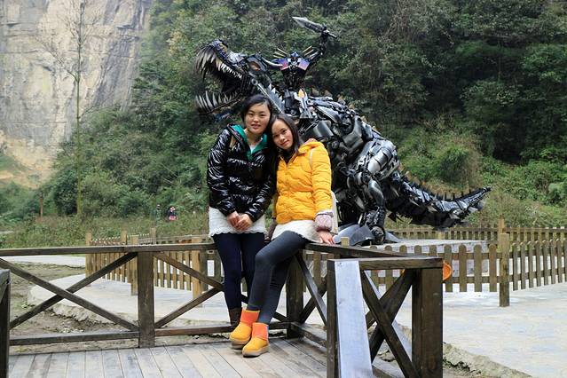 又是一段盘山公路后,到达了天生三硚景区门口。那个景区除了对电梯印象深刻,还拍过满城尽带黄金甲(后来回想,我竟然没看过这部电影呢~~~~)和变形金刚4之外,就不知道有什么比较好玩的了。胡乱走了一通,一个小时就游览完了,门票还那么贵。。。(觉得景如其名,天坑~)中间还看到很多抬滑竿的大叔们,一个小时100-120,但是景区都是下坡路,那么轻松,怎么可以这么贵呢~所以要去游玩千万不要去坐那些设施,贵,也没必要的。